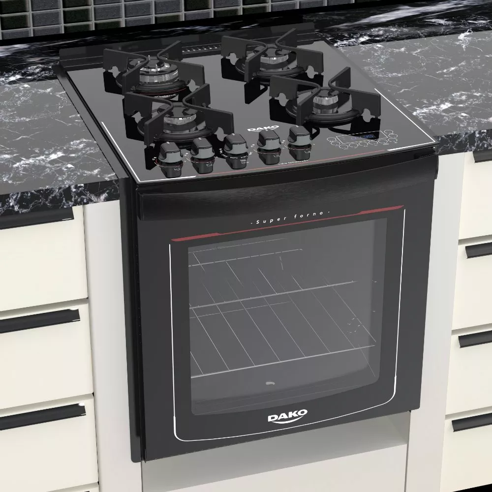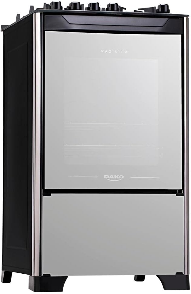 Esse fogão se destaca por ter forno com capacidade de 60 litros e medidas de 63,8 x 51,5 x 94,2 com 32 kg. Vale lembrar que é um dos modelos mais modernos do mercado, segundo a concepção de criação da própria Dako.